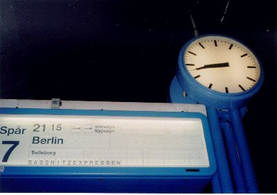 今回もクシェットだが、6人部屋に2人だったので、まぁ楽だった。同室の人はペルシャ出身だが、今はノルウェーに住んでいるという人で、ベルリンにいる親戚を訪れるところだと言う。この人、スタバンゲルに住んでいるらしく、自分がSandnesやStavangerに行ったというと、とても驚いていた。そんなこともあり、話がまた盛り上がる。この夜行列車も途中フェリーに列車ごと入っていくので起きなくてもいいのだが、この人の買い物を手伝うために(^^;)自分も船内に行ってみる。お礼にビールを一杯おごってもらった。