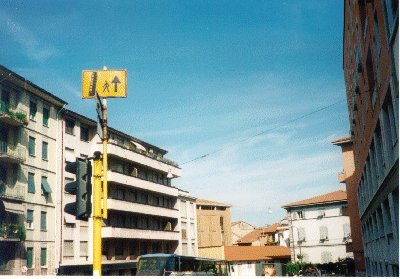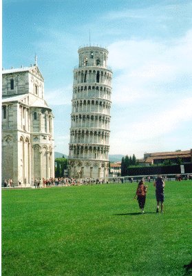 一時間後の10:35分にPisaに到着する。彼は昨日すでにピサの斜塔を見に行ってしまったので、ここで彼とはお別れする。ここピサの駅には珍しくコインロッカーがあったので、3,000リラで荷物を預けることに成功する。Pisaの駅から斜塔の方にあるって行くと、所々に看板があり間違えずに行けた。