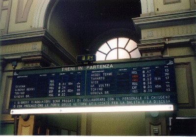 約15分ほどで昨日バスを乗り換えた場所に到着する。行きの逆だらかここで35番に乗り換えればいいのだが、駅まで歩いて10分ぐらい行けそうだったのでそのまま歩いていくことにする。8:30ちょっと過ぎぐらいにGenovaの駅には着いたが、やっぱり列車が遅れているようである。なんと驚いたことにGenova駅の運行掲示板には、(たぶん)列車の遅れている時間まで表示する欄があった。