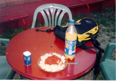約2時間ほどでペルピニャンに到着する。この駅も"Security Reason"とかいって、コインロッカーがやはり使えなくなっていた。とりあえずおなかが減ったので、駅のレストランで食べようとするが、完全にフランス語だけのメニューで、しかも筆記体で書かれいてるので全くわからなかった。しょうがなくウエイターさんに、話しかけると本日のおすすめメニューを勧められる。英語がよく通じなかったので、どうしょもうないのでそれにすることにする。すると、チャーハンみたいなものとチキンの串焼き見たいのが出てきた。ご飯を食べたのも久しぶりだし、味も結構おいしかった。しかし、コーラとこれで70Fというのはちょっと高くないのか?