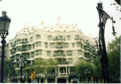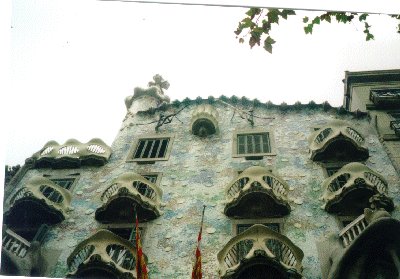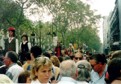 12時近くになったので、昨日行った市場の周りでお昼を食べようとするが、今日はなんと市場ごとお休みらしい。というのもたまたま今日はバルセロナのお祭りで、カタルーニャ広場からのランブラス通りは、大型人形などがいっぱい出ている。もちろんすごい人混みである。ランブラス通り沿いのお店は高いので、地球の歩き方には"危ない"と書いてあった旧市街の方へ少し行ってみる。今日はお祭りということもあり、人通りは結構あるのでそれほど危険な感じはしなかった。