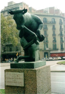 ここからさらに上のお城まで行こうかと思ったが、何しろ暑いのであきらめる。で、ミロ美術館に行くことこにする。ミロといわれてもよくわからない程、美術にはうとい自分だが地球の歩き方を読んでいると、その作風がとてもおもしろいので行ってみたくなったのである。しかし、13:40分ごろ着いたのだが、14:10分に閉まるのでもう入場は出来ないと言われてしまった。入り口に書いてある看板を見ると、確かに"14~15時まで閉館"と書いてあるので、しょうがなく先にオリンピックスタジアムに行くことにする。